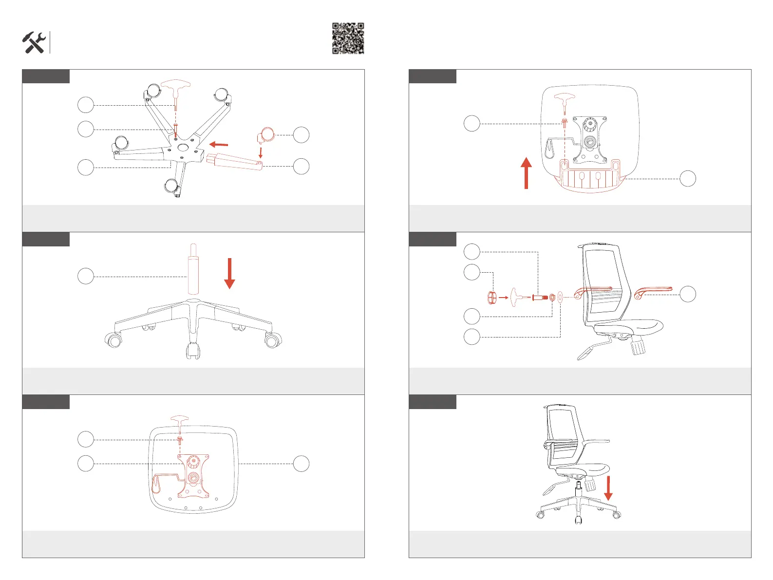 Utilizza 5 viti M5X38 per collegare le 5 gambe della sedia alla base,