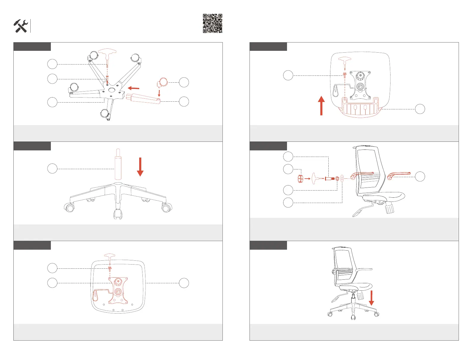 5本のM5X38のネジを使用して、5つの椅子の脚をベースに接続し、