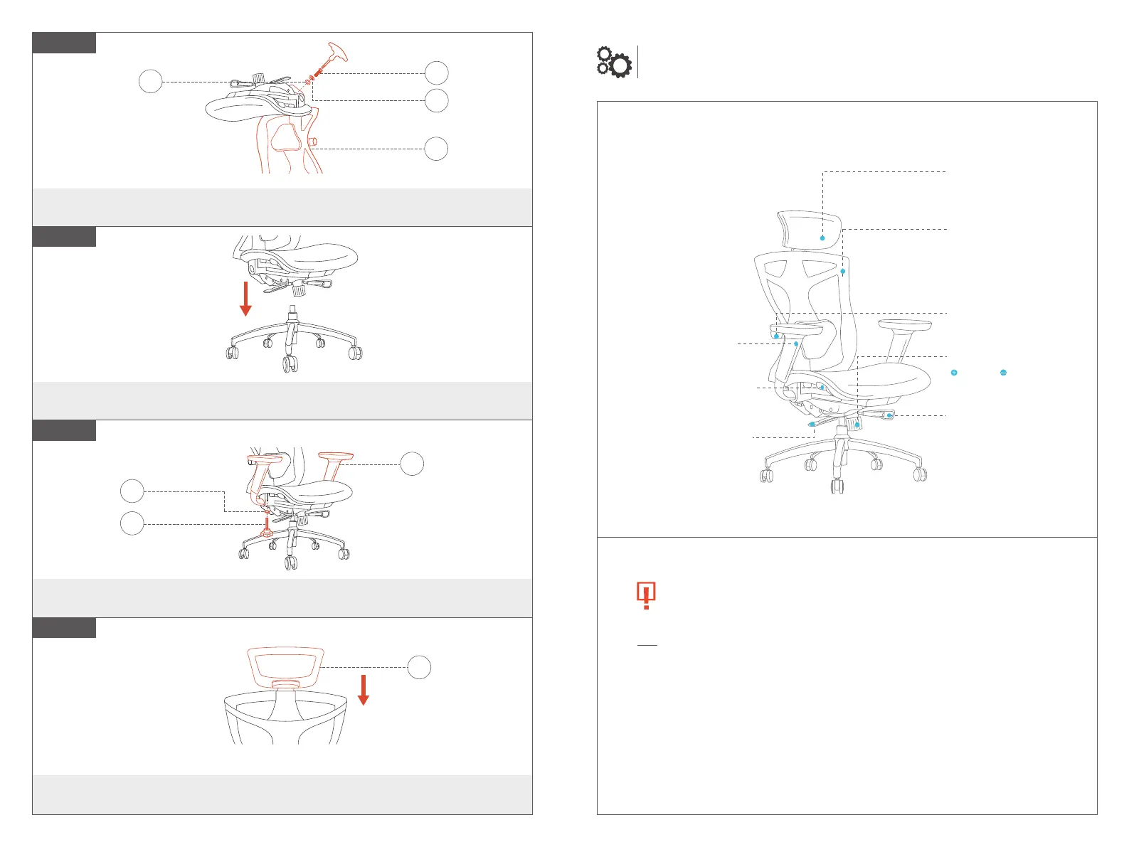 8. For your safety, do not attempt to disassemble the gas lift mechanism.