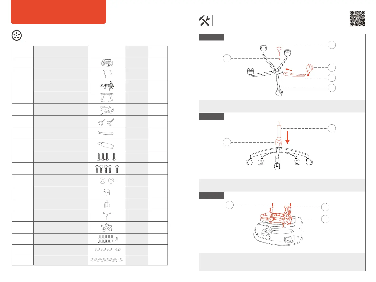 Verbinden Sie die fünf Stuhlbeinrohre mit der Basis mit zehn M6x12 Schrauben und setzen