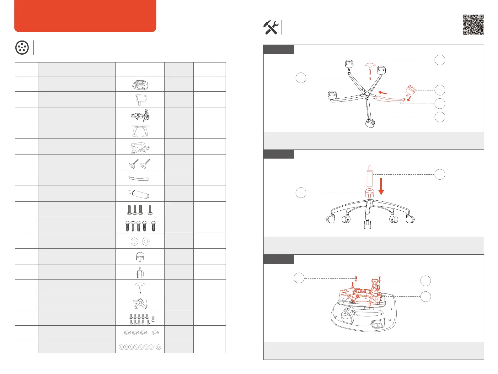 Assemblez les cinq tubes des pieds de chaise à la base à l'aide de dix vis M6x12, puis insérez les roulettes.