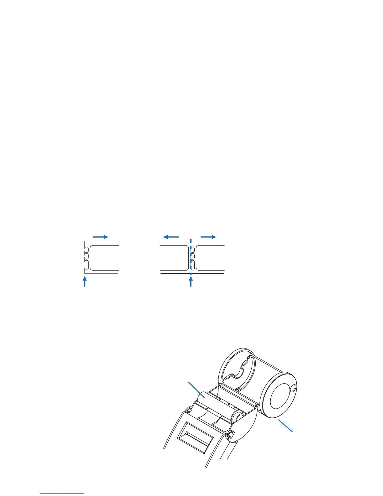 If the end of the roll is not prepared as shown above, cut between the labels leaving as