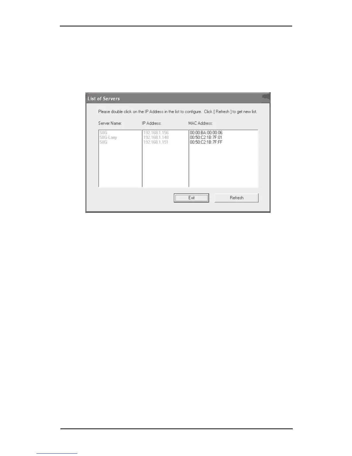 5. At the List of Servers box click Refresh to view