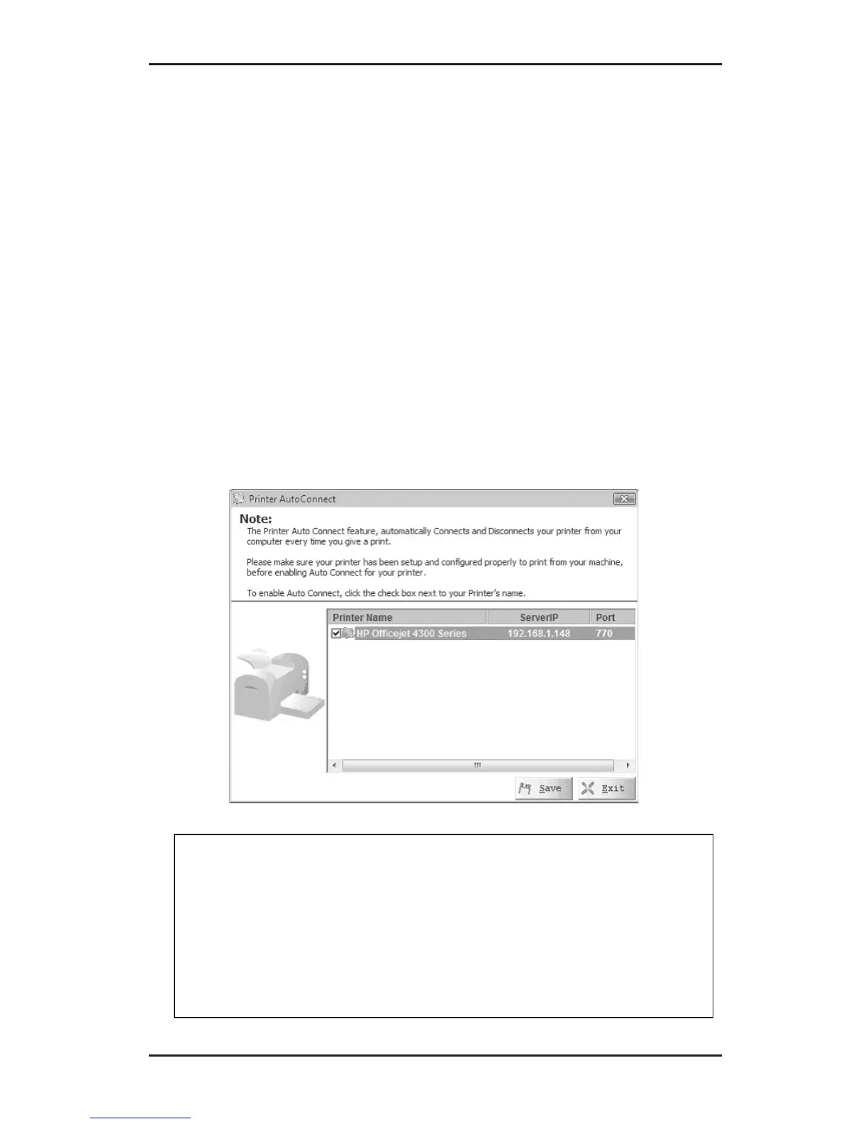 The Printer Sharing feature automatically connects and