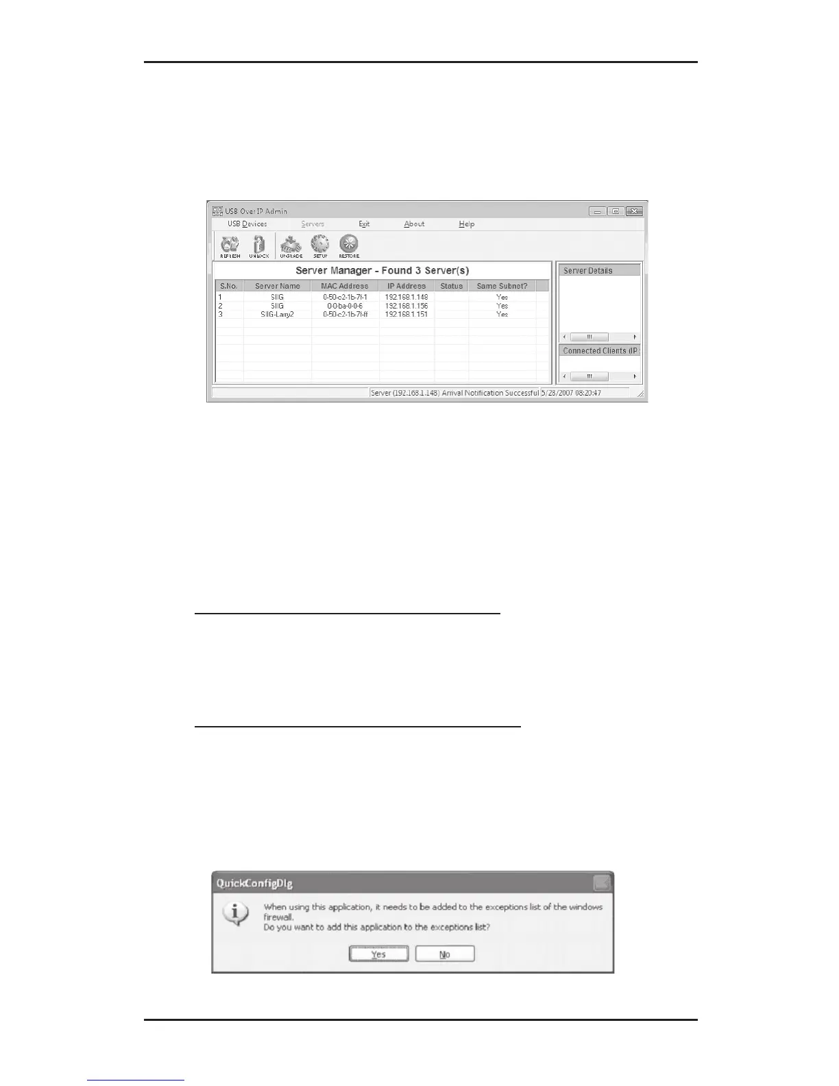 Firewall exceptions list.