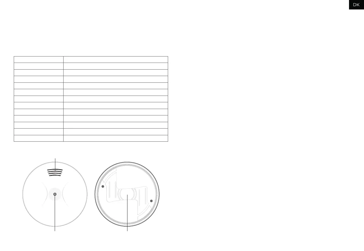 Dette produkt reagerer eektivt på røgen fra ulmende og brændende ild. Den indbyggede, fotoelektriske røgsensor