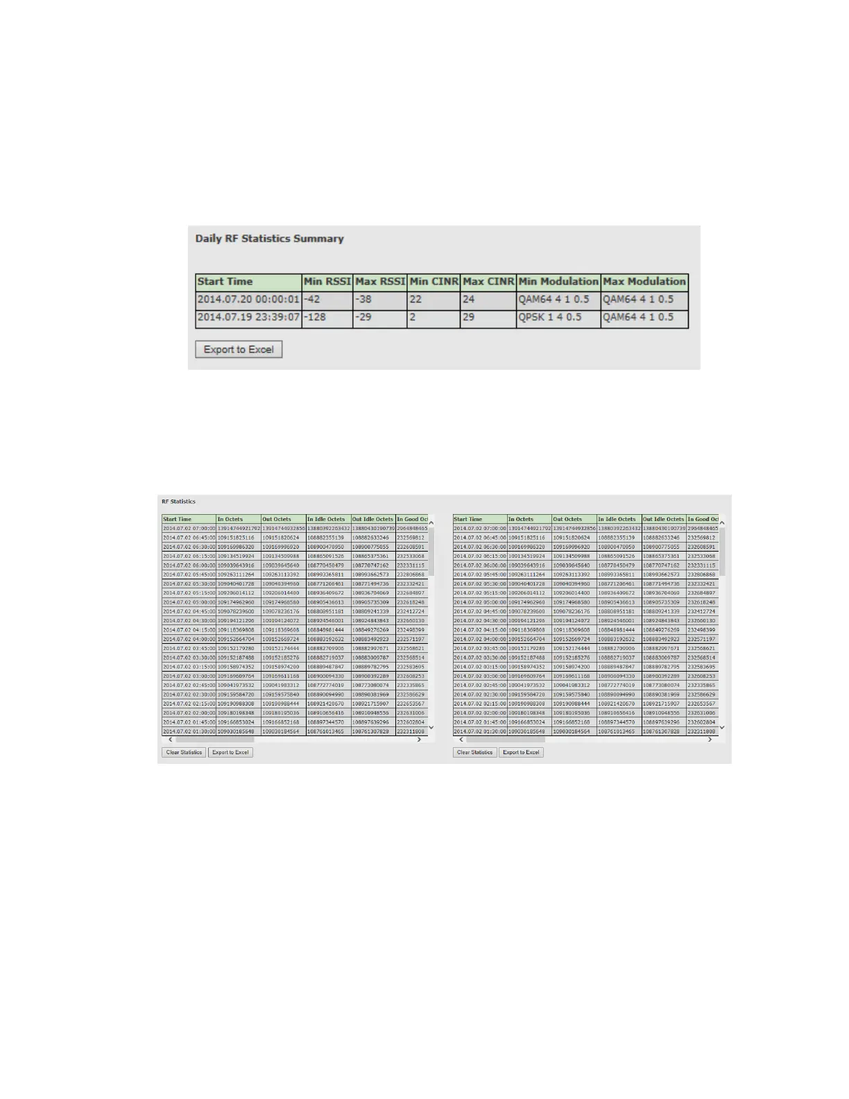 Figure 16-3 Statistics Page: RF Statistics