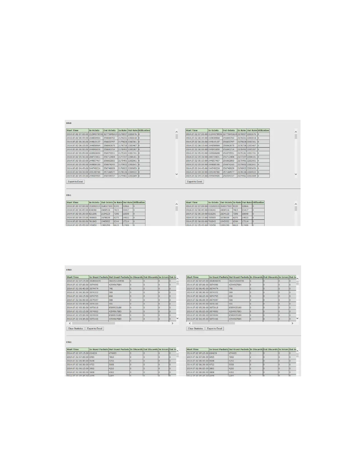 Presented per port: Eth0 (RF), Eth1 to Eth4 – 96 intervals of 15 minutes (last 24 hours).