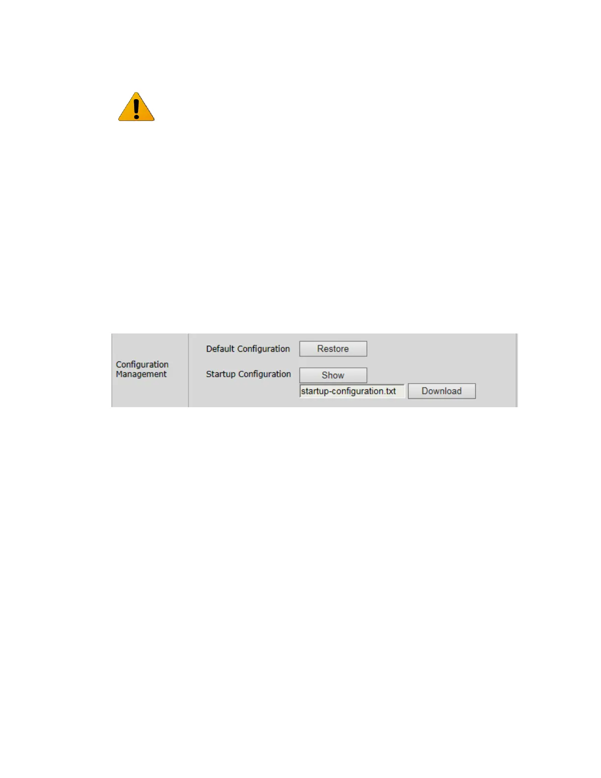 Default Configuration – Click Restore to delete current startup-