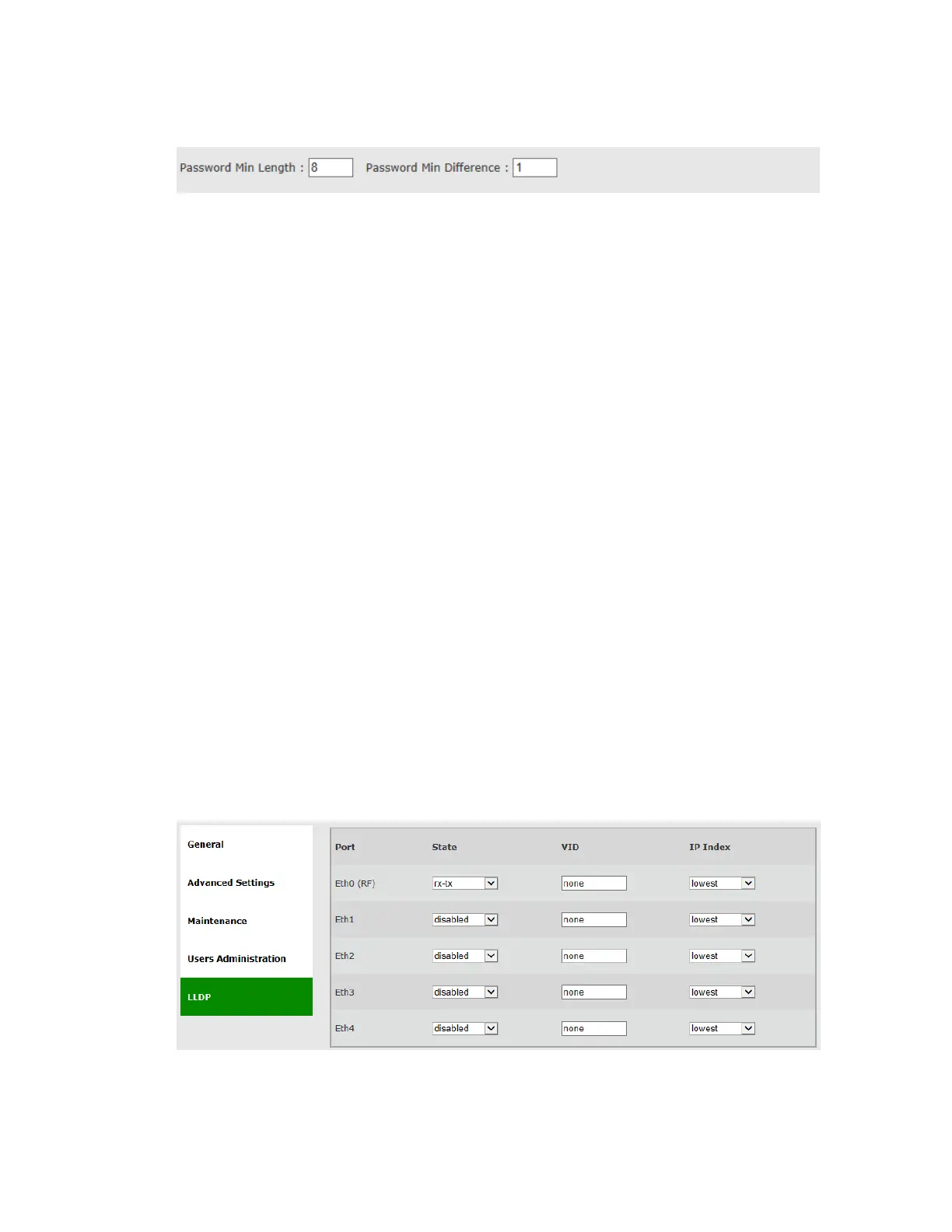 Password Min Length - minimum password length (0 to 16 characters). Default is