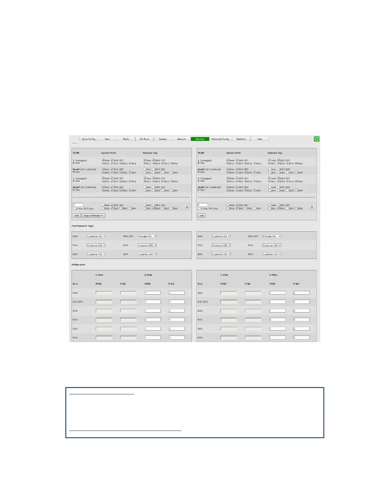 VLAN (for example, S-VLAN 2). This S-VLAN will be allowed on Eth2 and Eth0 (RF).