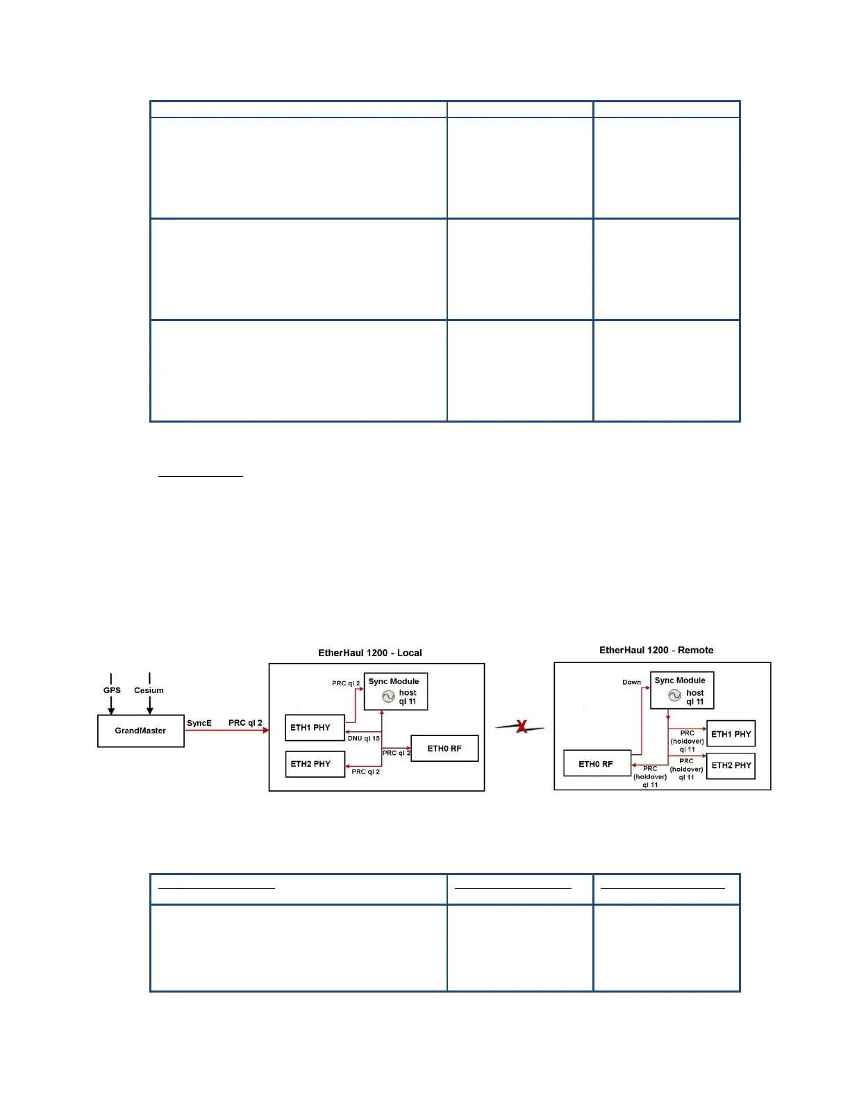 The remote EtherHaul switches to holdover mode (internal clock) while maintaining the