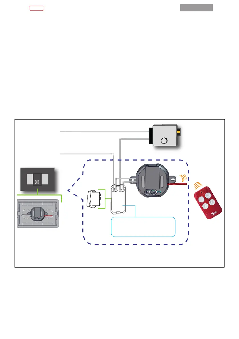 Connect the two wires (white - Fig.1/F) on the receiver to the exis ng door-opening switch (parallel to