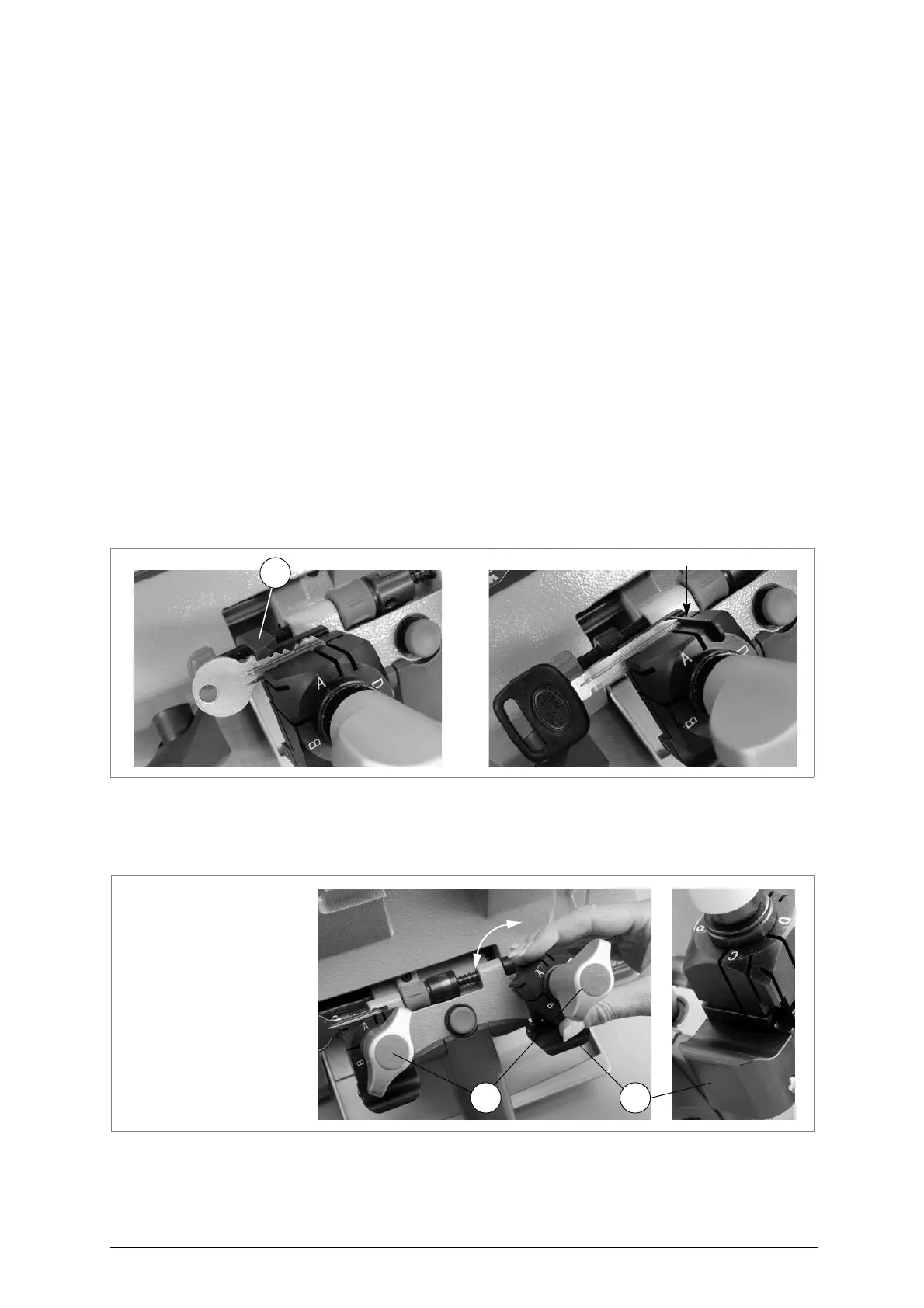 • for keys placed flat, such as those with cuts on one side only, position the clamps as shown