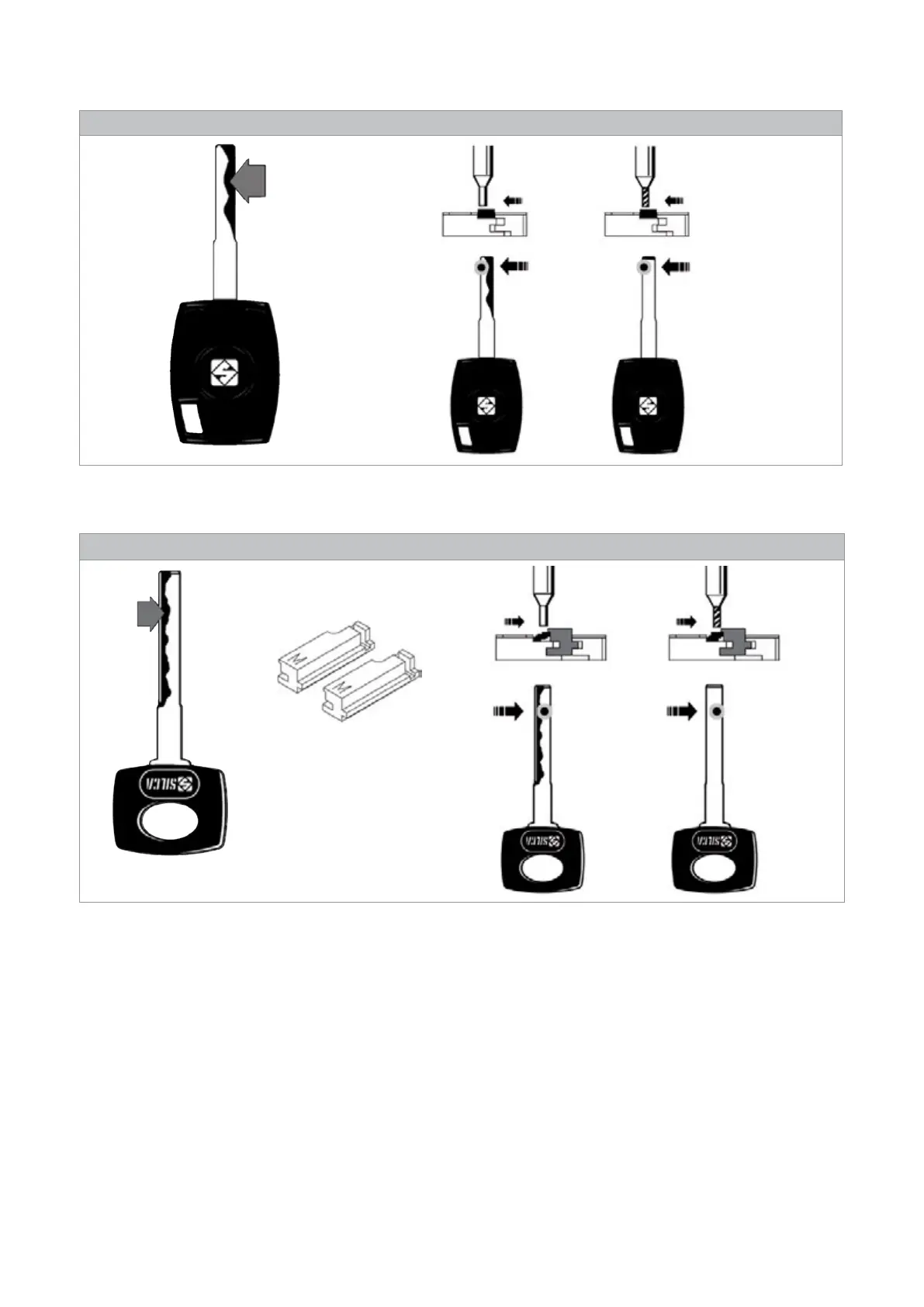 Take the tools above the keys centred over the key stem (Fig. 24).