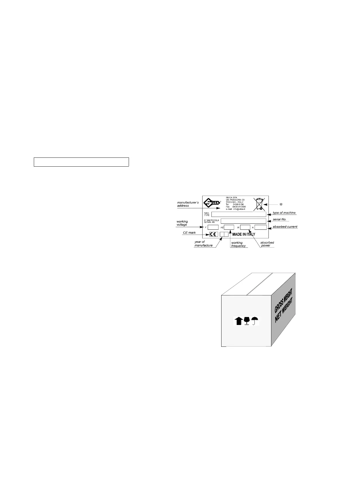 The packing protects the machine from the risks of handling (knocks, etc.) and is