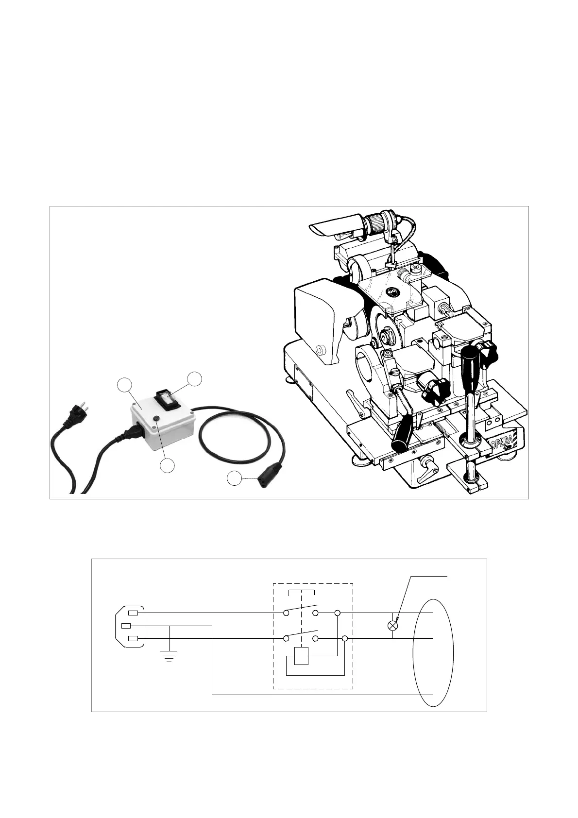 The key-cutting machine must be supplied with electricity by means of a safety device. The plug must
