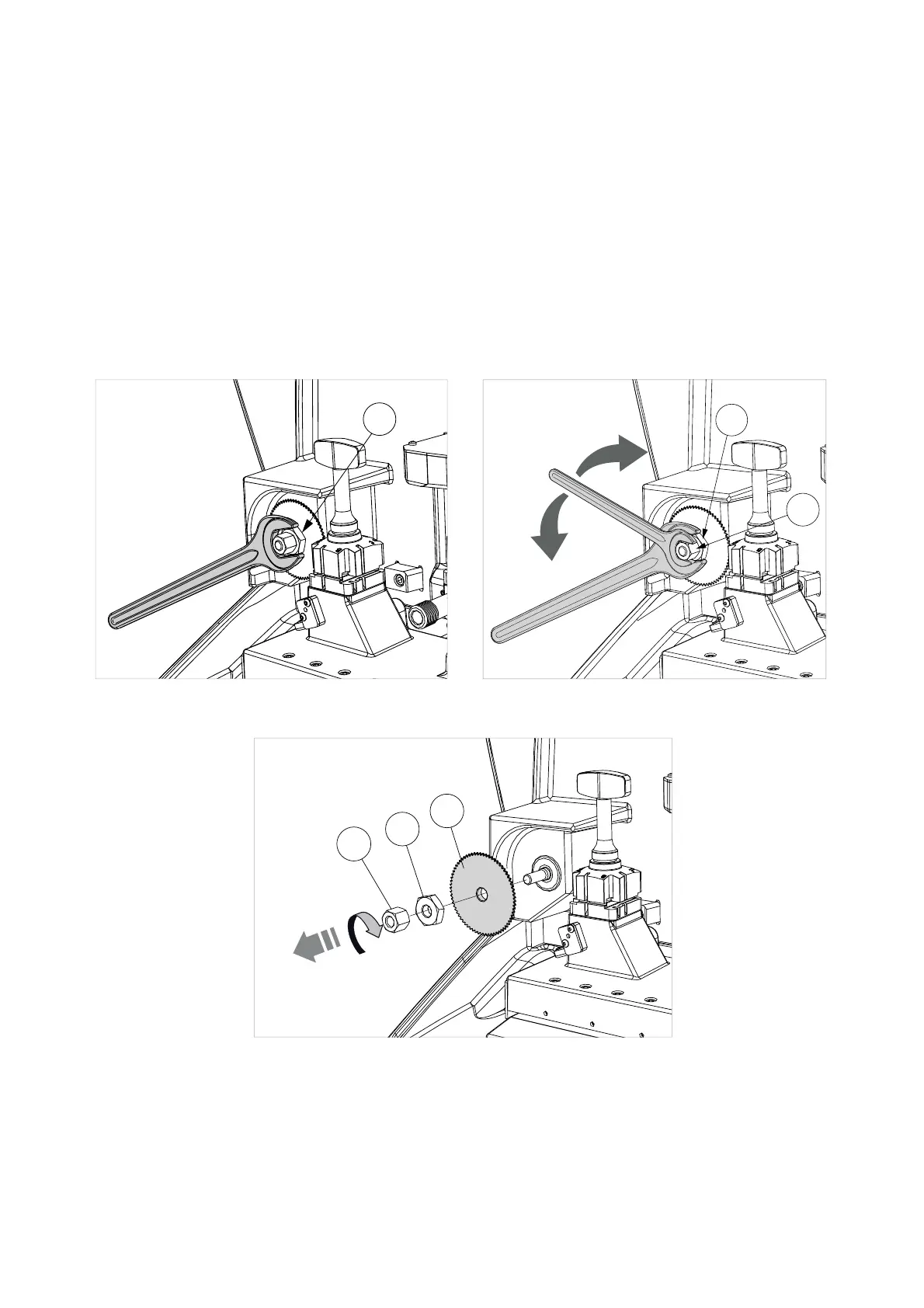 3) Use a 19mm wrench (provided) to hold still the hex washer (F1) (Fig. 41).