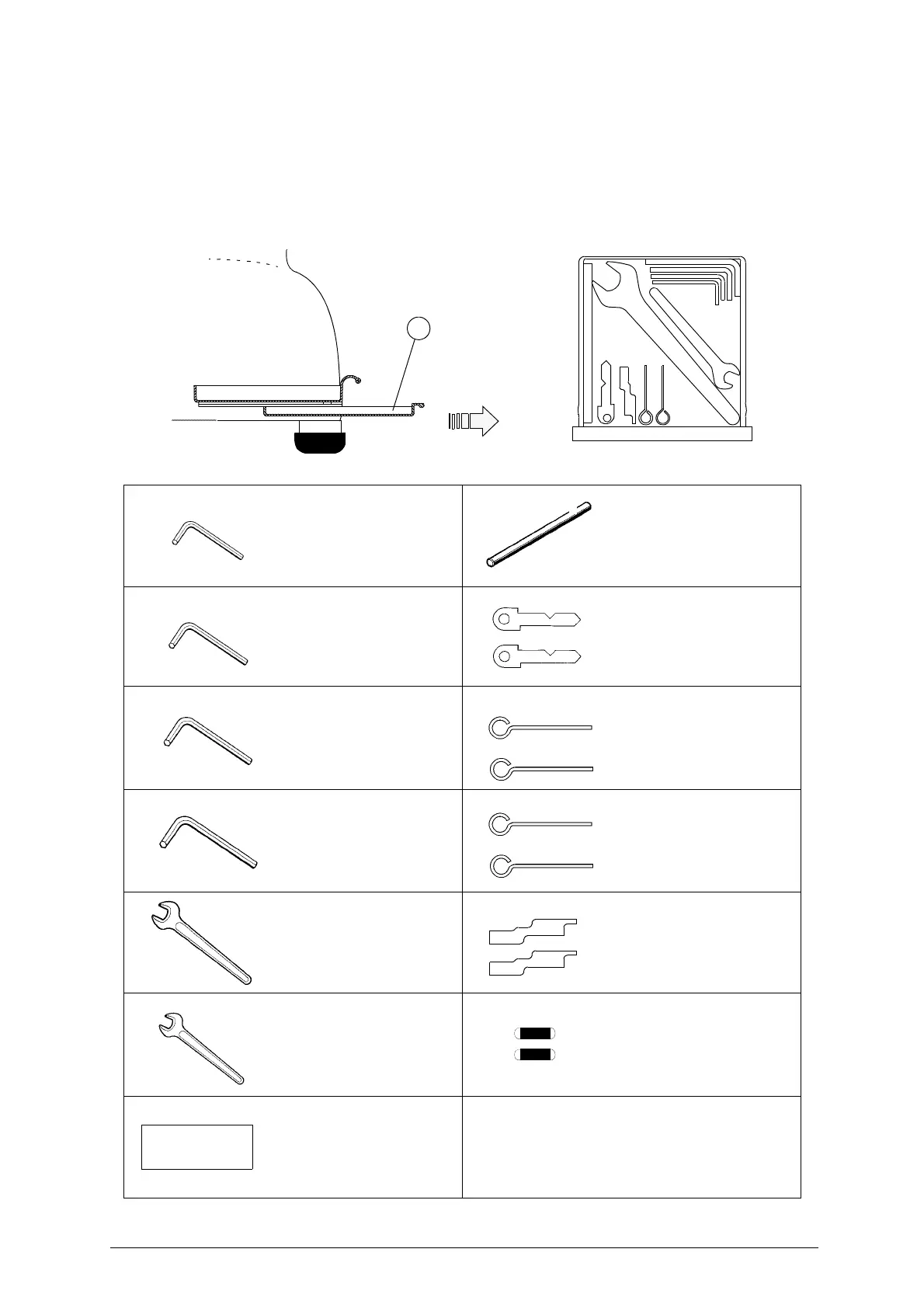 hand. It is advisable to always have a tool box containing: tools, cutting tools, brushes, belts and small