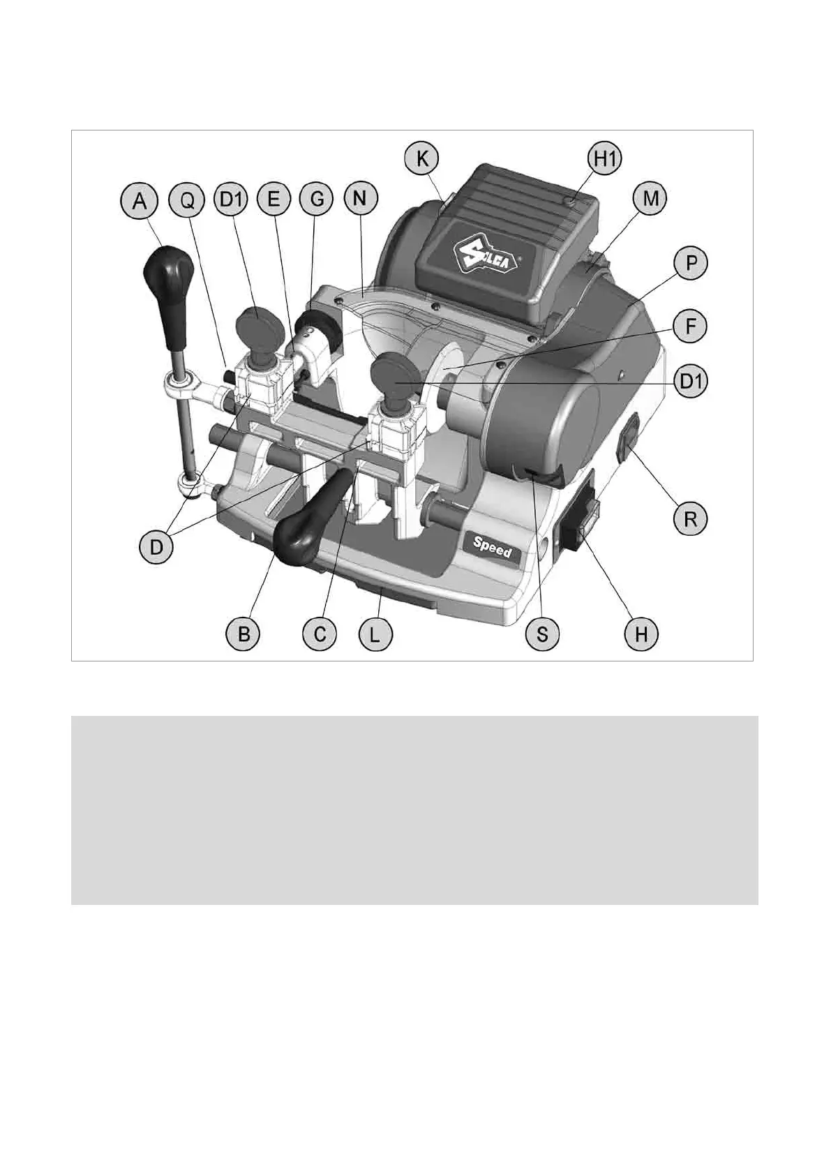 Silca Speed - Main Working Parts Identification; Labeled Machine Components