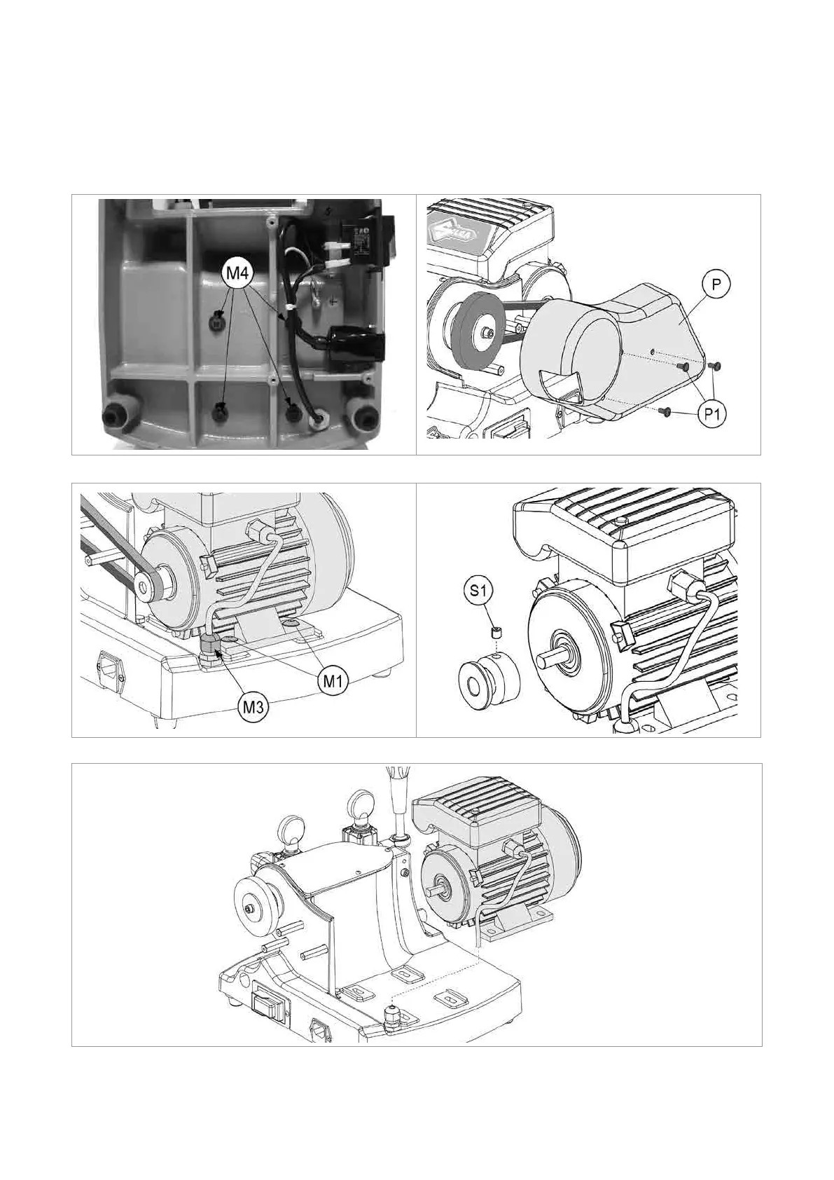 17) Replace the protective cover (P) and secure with the 3 screws (P1).