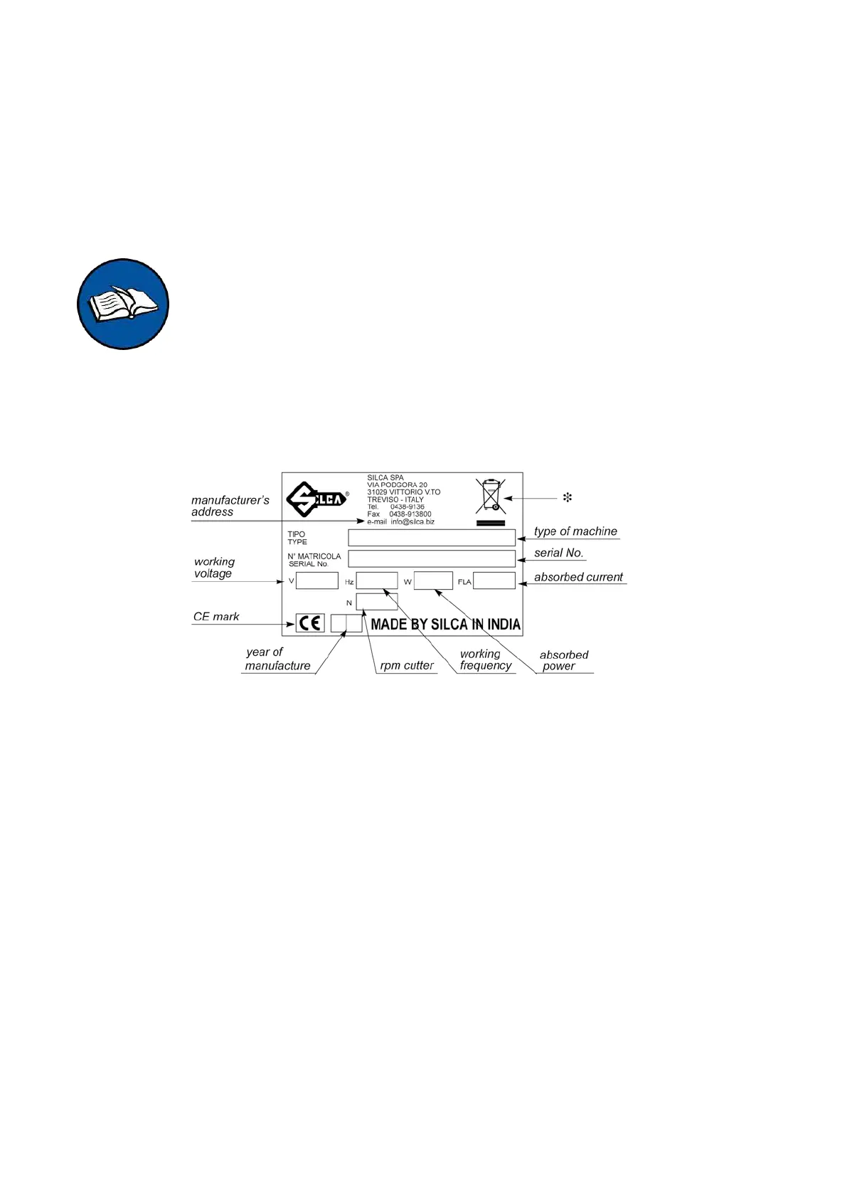Silca provides purchasers of SPEED with After-Sales Service. For the total safety of the operator and machine,