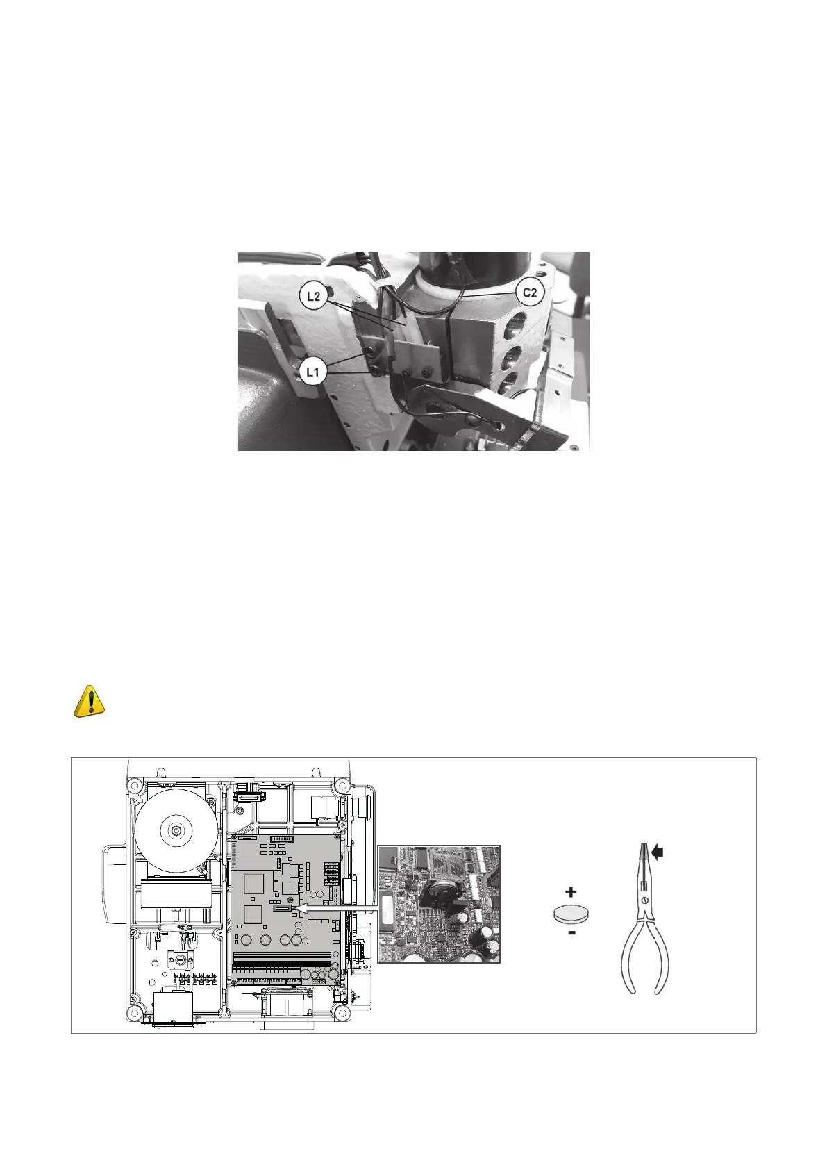 4) Use the pliers with insulated tips to introduce the new battery, inclining it and pushing against the tab to help it