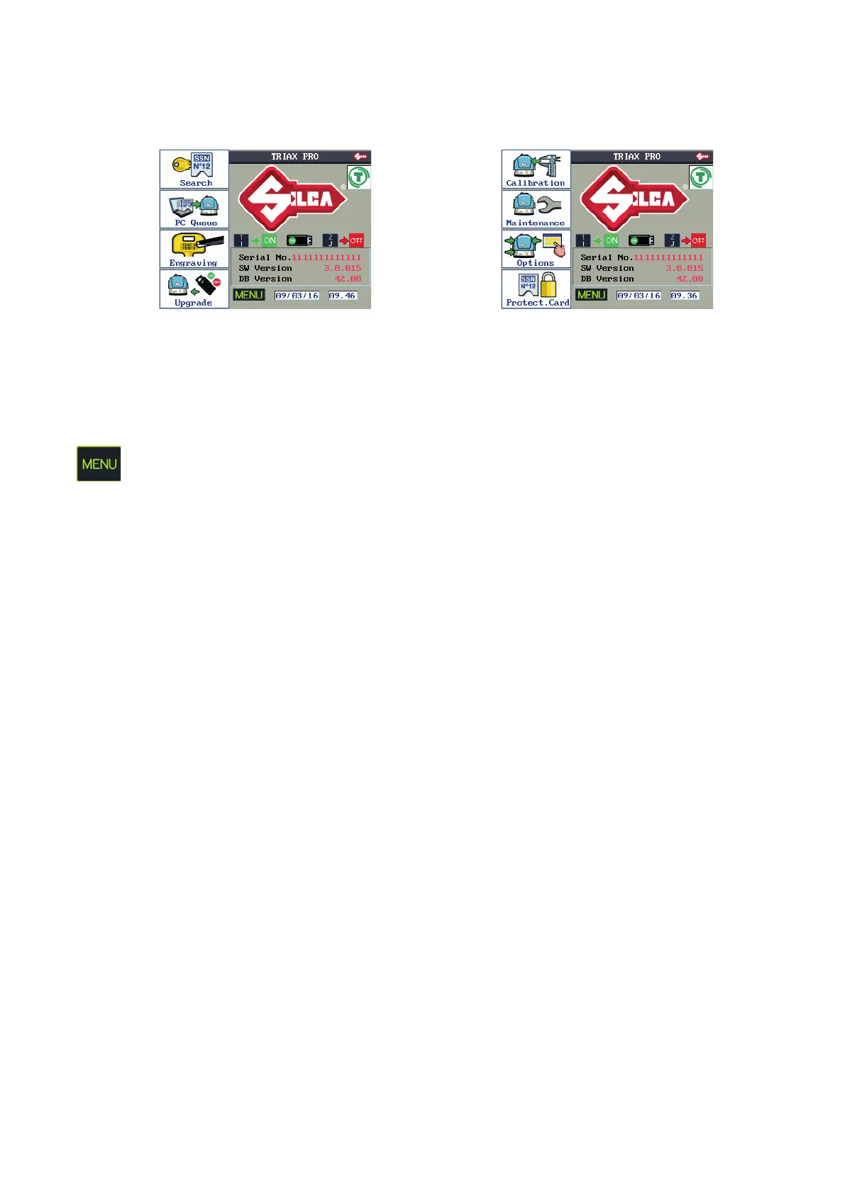 Press the MENU buon to view the whole list of the main funcons in the machine program.