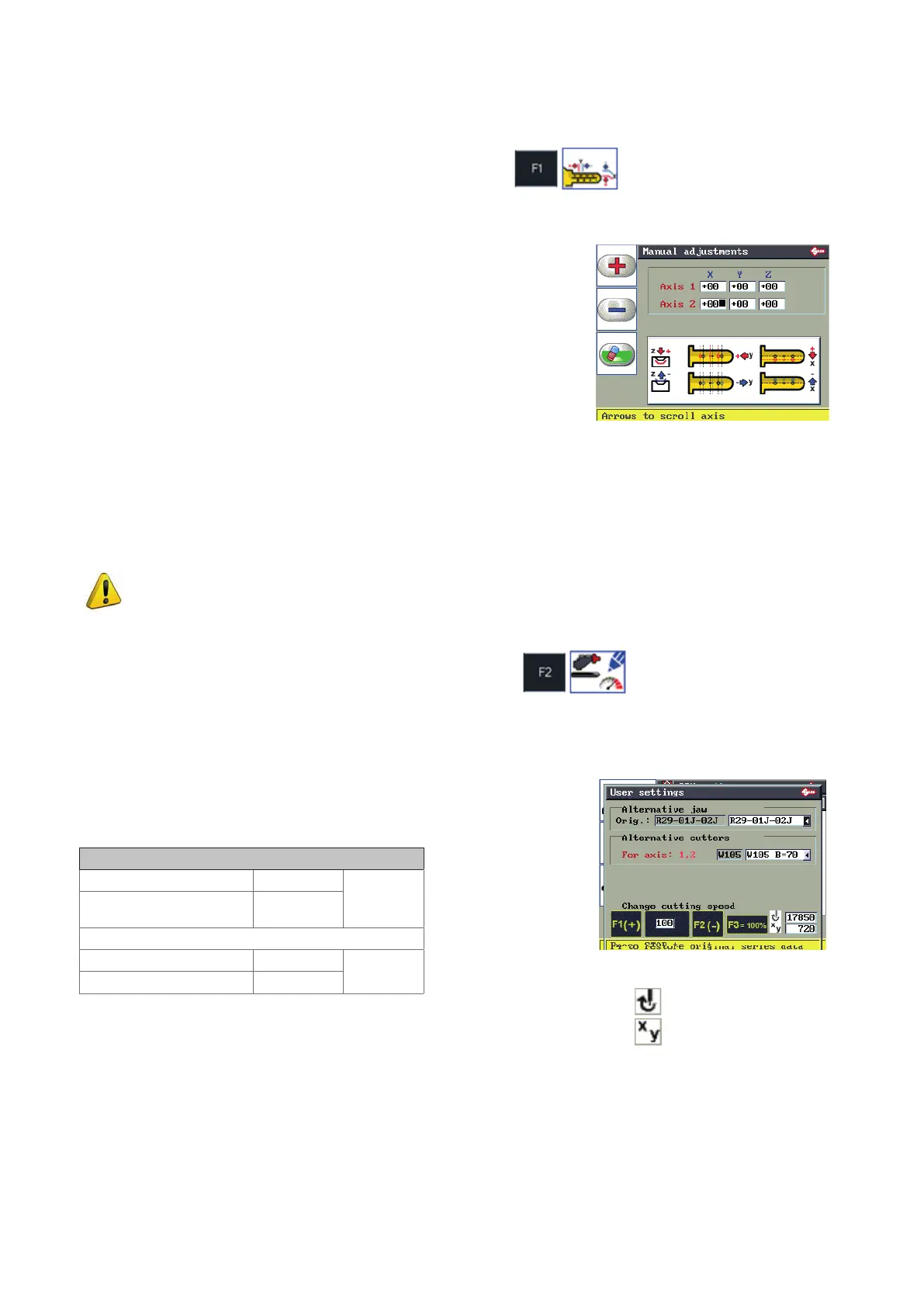 (*) variation in the advancing speed of the carriages during the key cutting stage only.