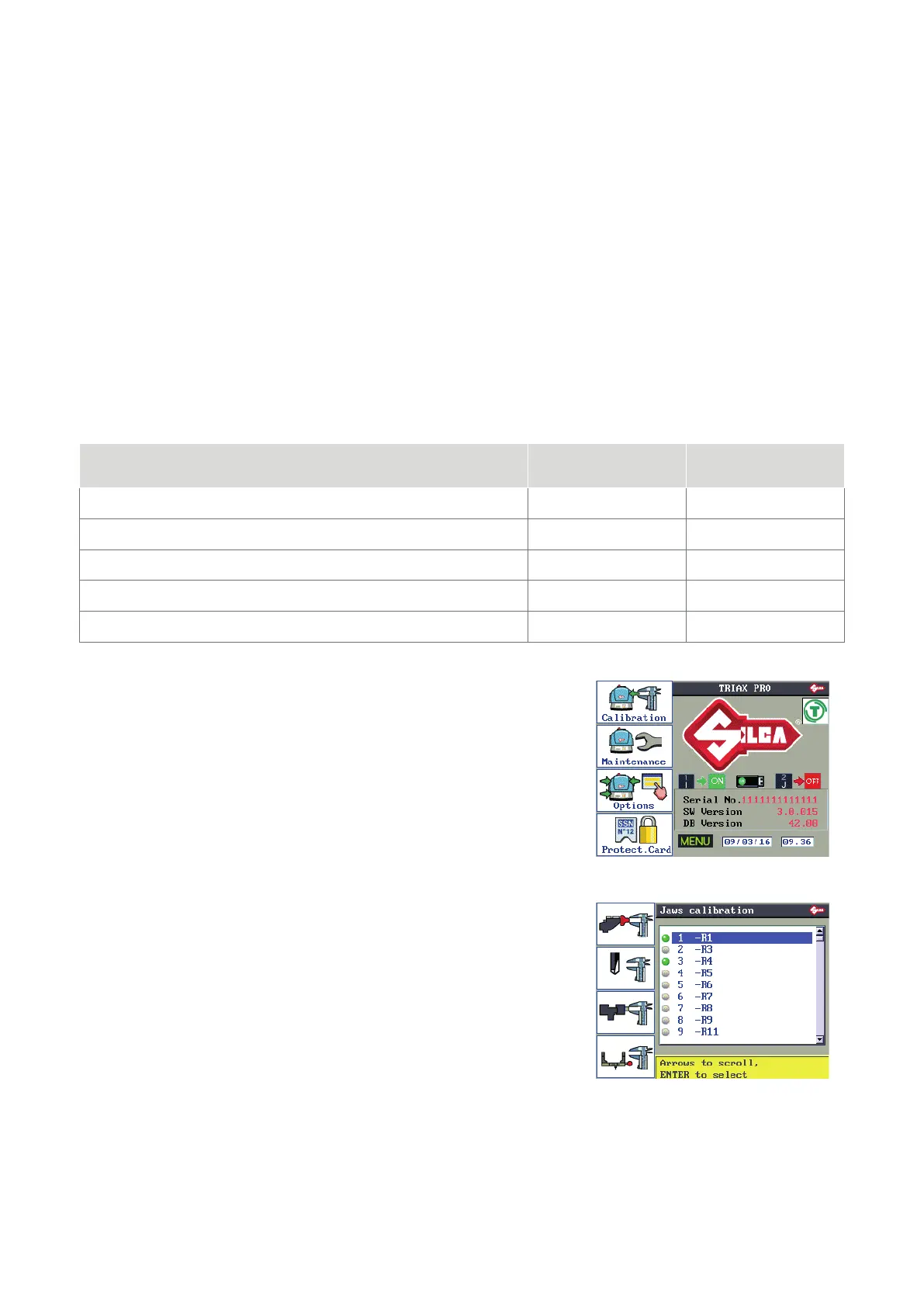 In the events shown in the table it may be necessary to repeat one or all the calibration operations on the clamps