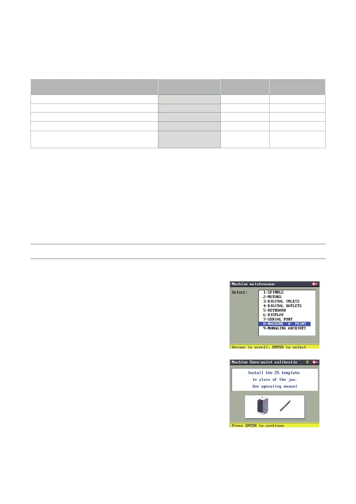 NOTE: the operation to load “machine zeros” must be carried out by following the instructions below. After this
