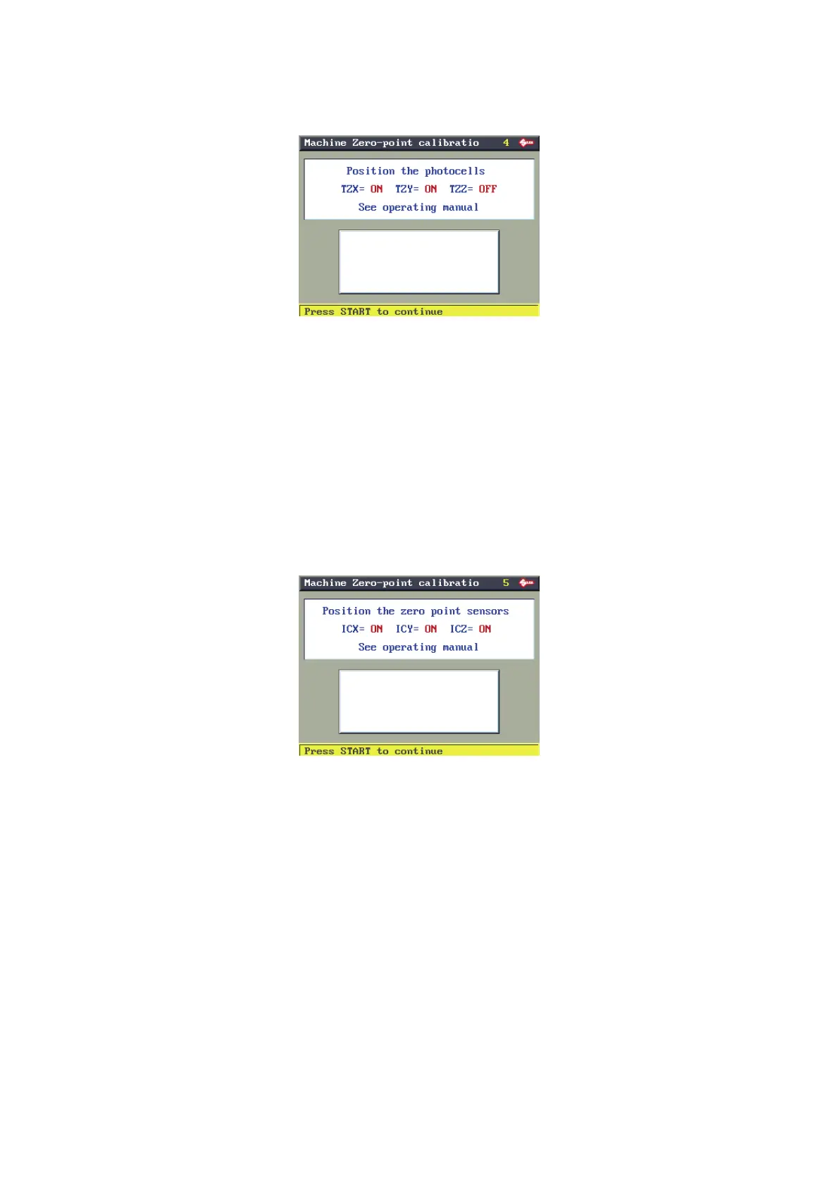 • Vertical carriage (Z) photocell: turn the Z axis disk manually until the TZZ description on the display goes from