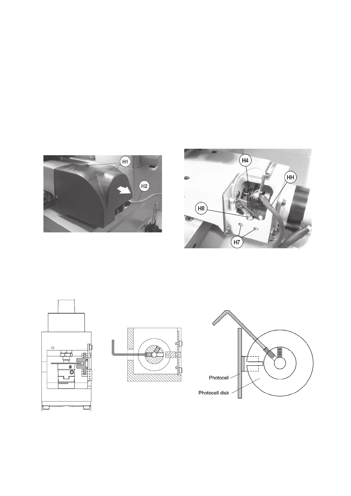 6) Loosen the 2 screws (H7) on the photocell support and pull out of carriage.
