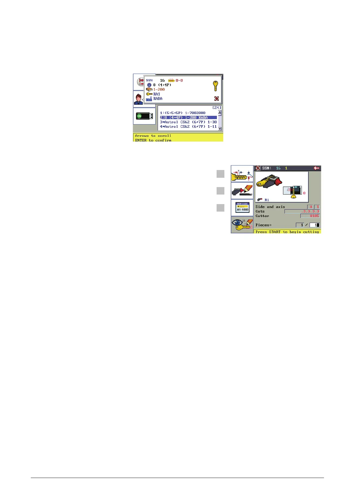INDICATIONS on display and key-cutting PROCEDURE