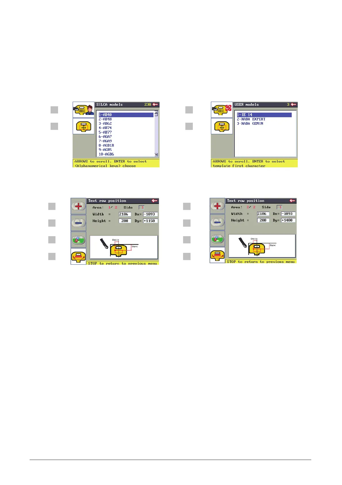 List of SILCA templates (installed on machine, only 2 lines can be engraved).