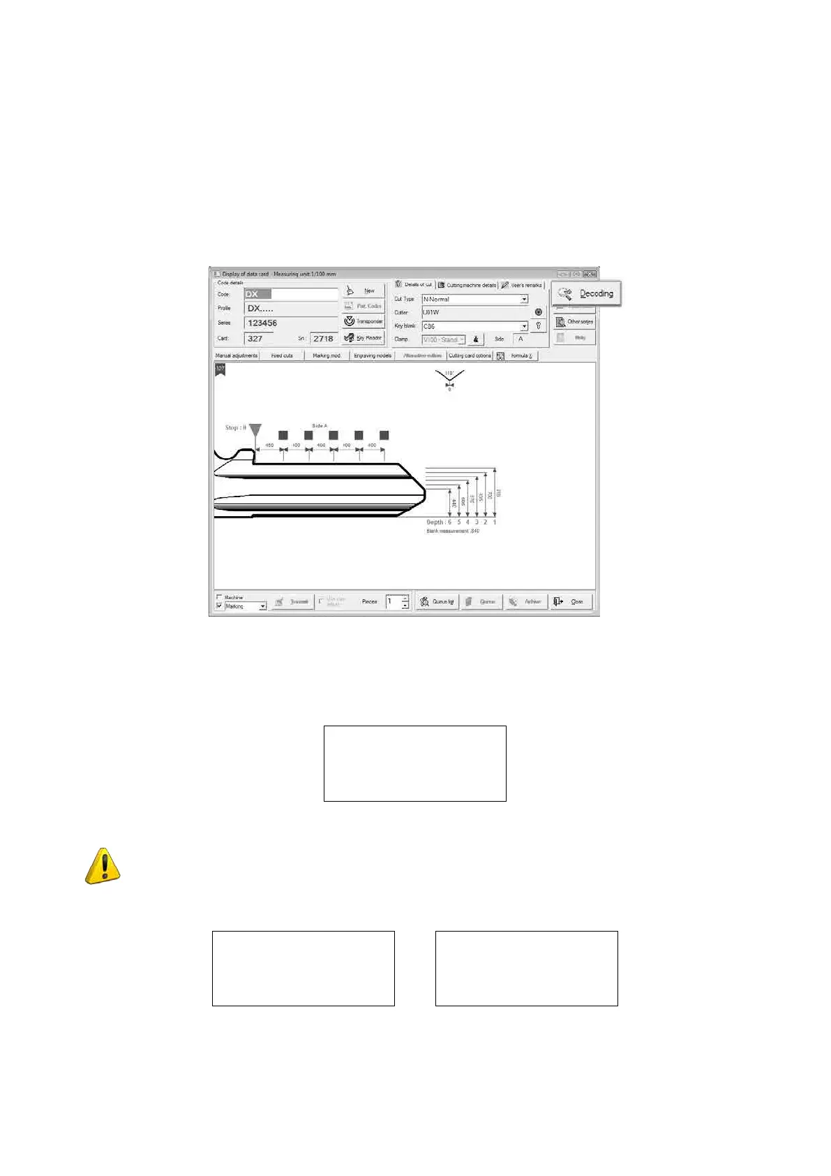 ATTENTION: during decoding THERE MUST BE NO KEY IN THE CUTTING CLAMP OR