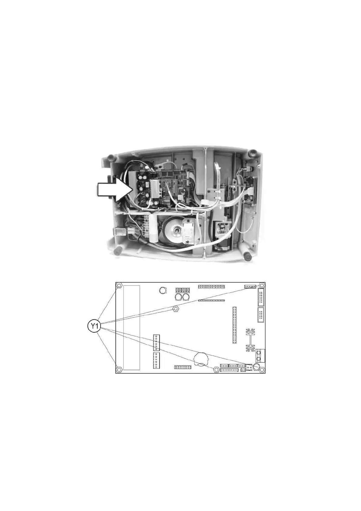 4) take the electronic circuit board off by unscrewing the 6 nuts (Y1) (Fig. 85).