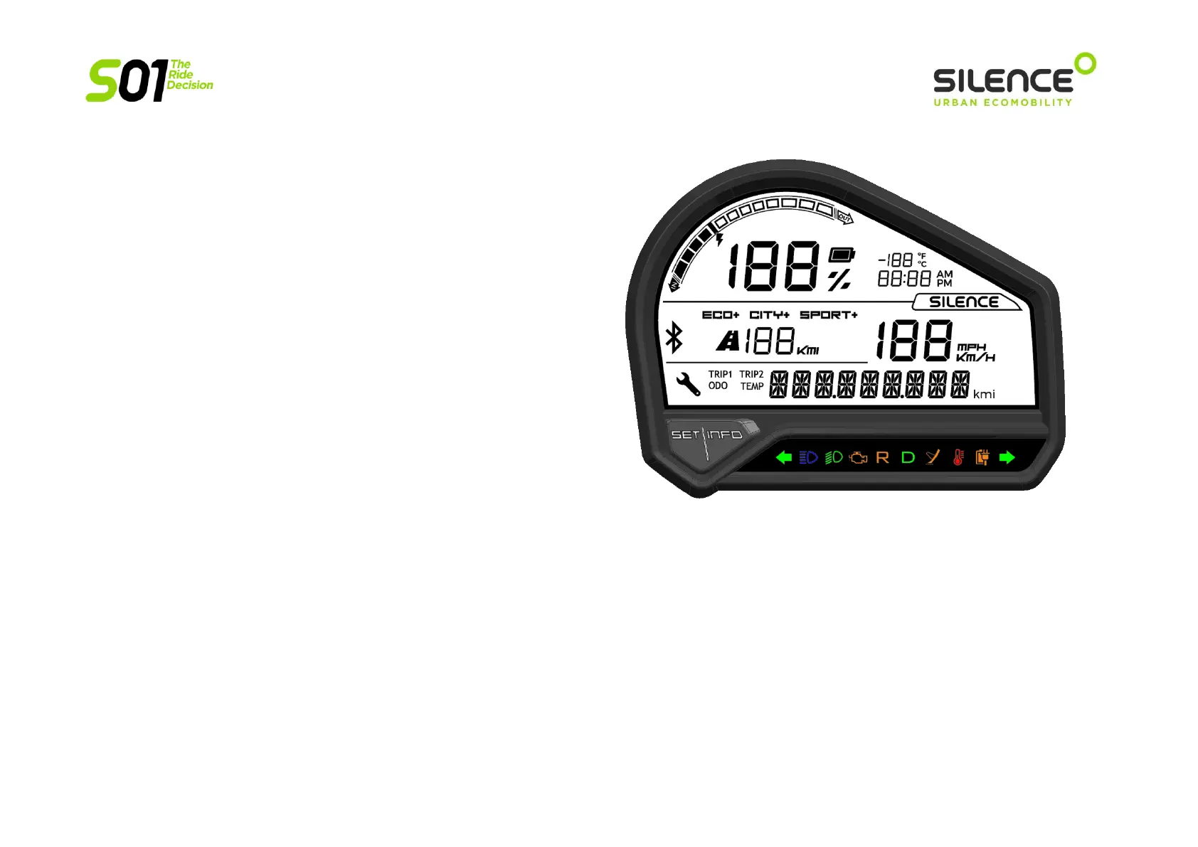 It features an LCD screen, 2 buttons (“SET” and “INFO”) and 10 warning lights,