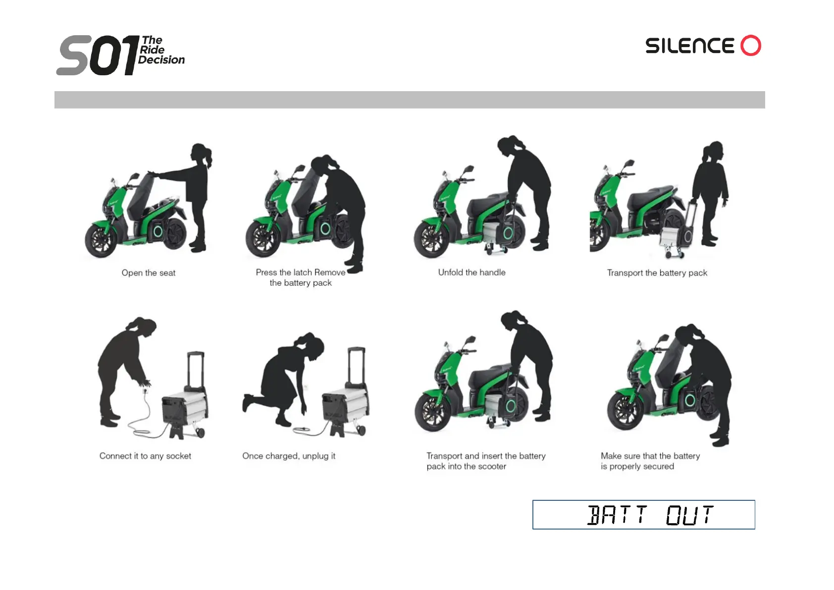 When the battery does not make proper contact with the scooter, the information "BATT OUT" appears