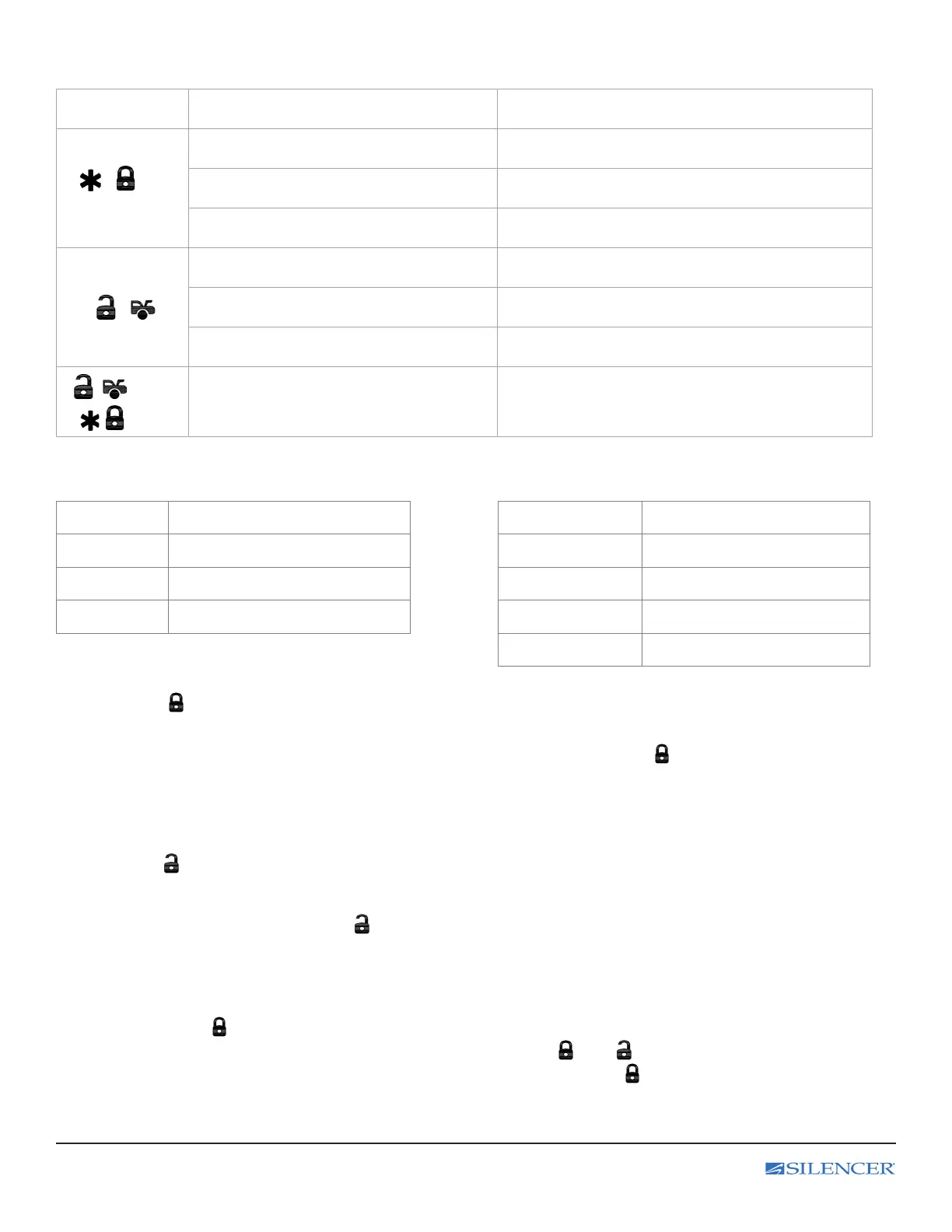 Silent Unlock Doors Press and hold for 1.0 seconds and 1 LED ash