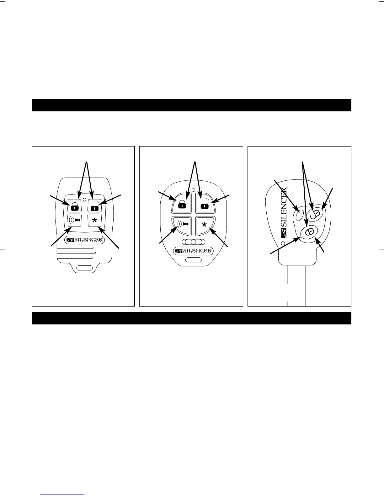 The Silencer security systems can operate from any one of the three transmitters shown here. Locate the