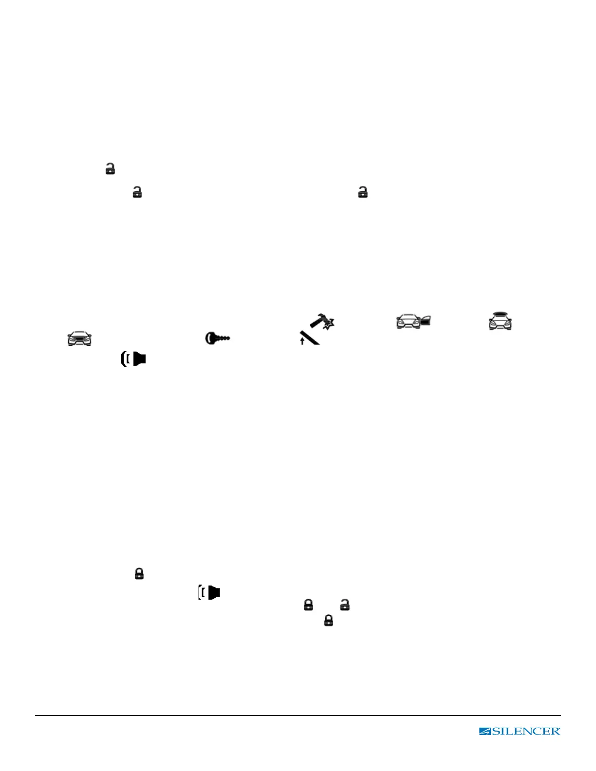 • Pushing the button a second time within 3 seconds will disarm the security system and unlock the other doors.