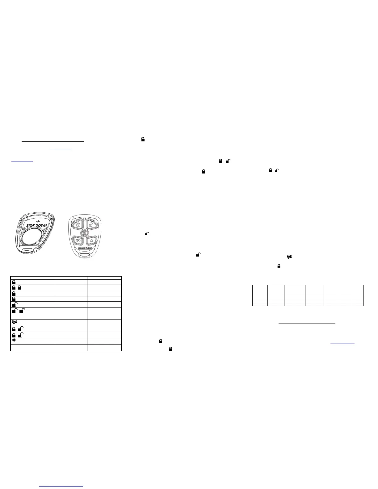 2. Disarm 2or4 Chirps 2 or 3 Flashes Off or Fast flash Unlocking Off