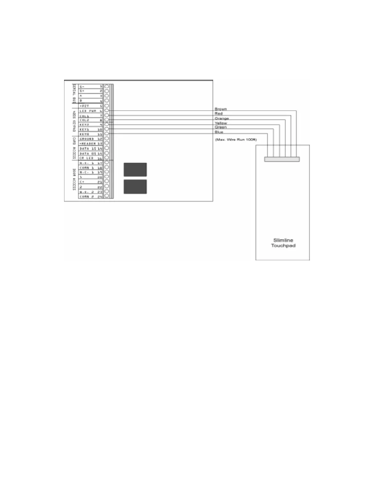 The 4205 Access Control Touchpad is connected to the 4421 as shown in Figure 3-3.