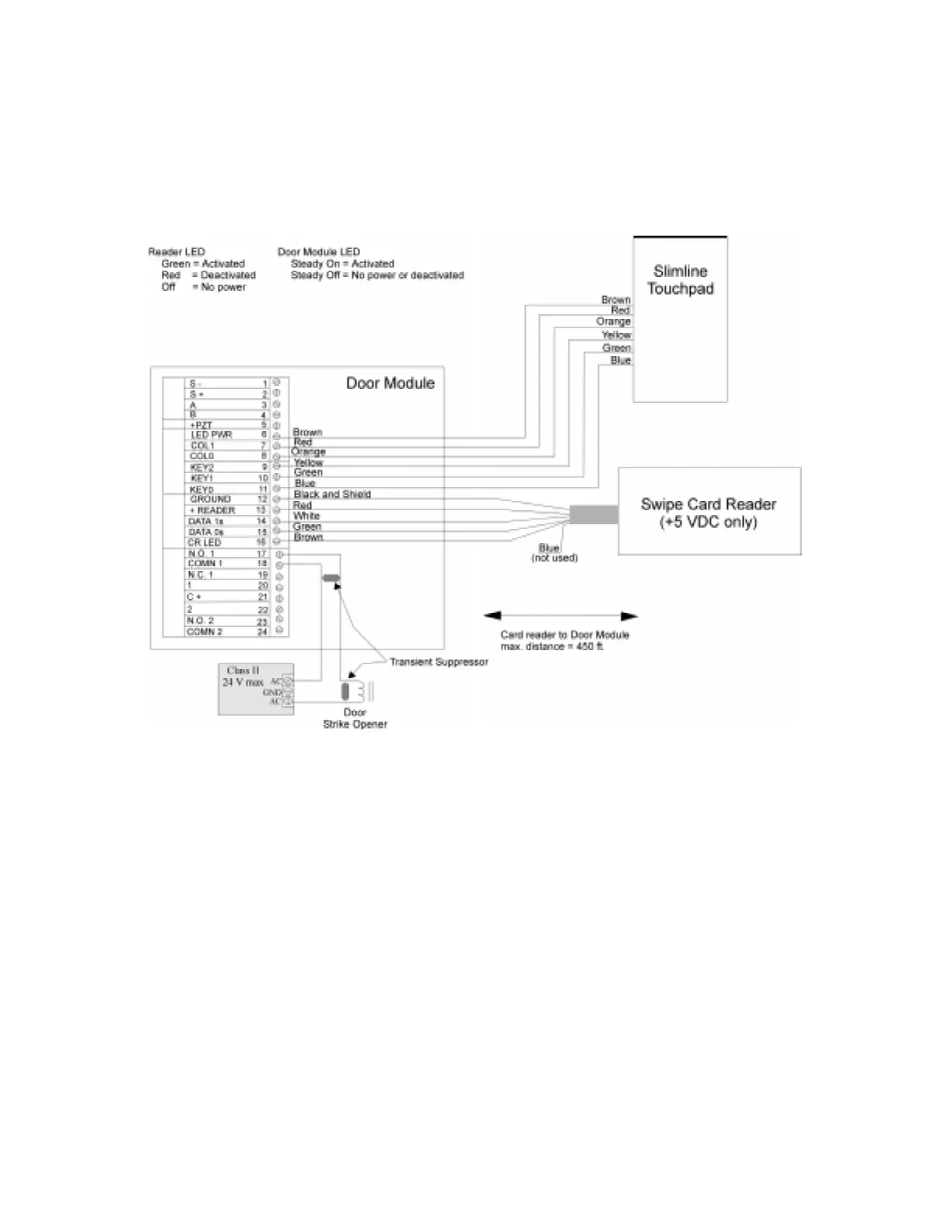 Wire the swipe card reader to the 4421 Door Access Module as shown in Figure 3-5. The card
