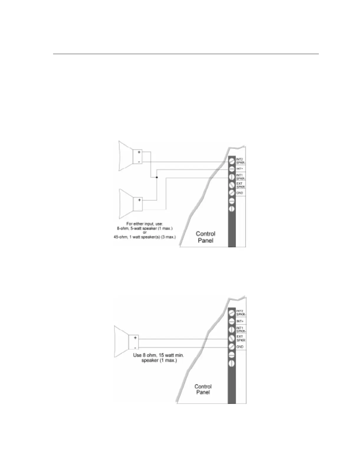 Each internal speaker output can accept one 8 ohm, 5 watt speaker or three 45-ohm, 1 watt