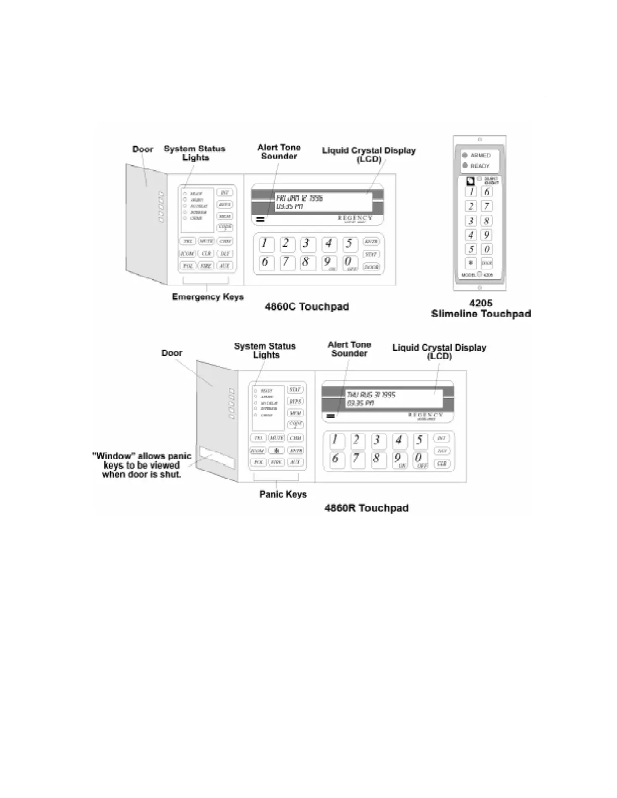 Figure 5-4 Model 4860C Commercial LCD Touchpad, Model 4205 Slimline Door Access Touchpad