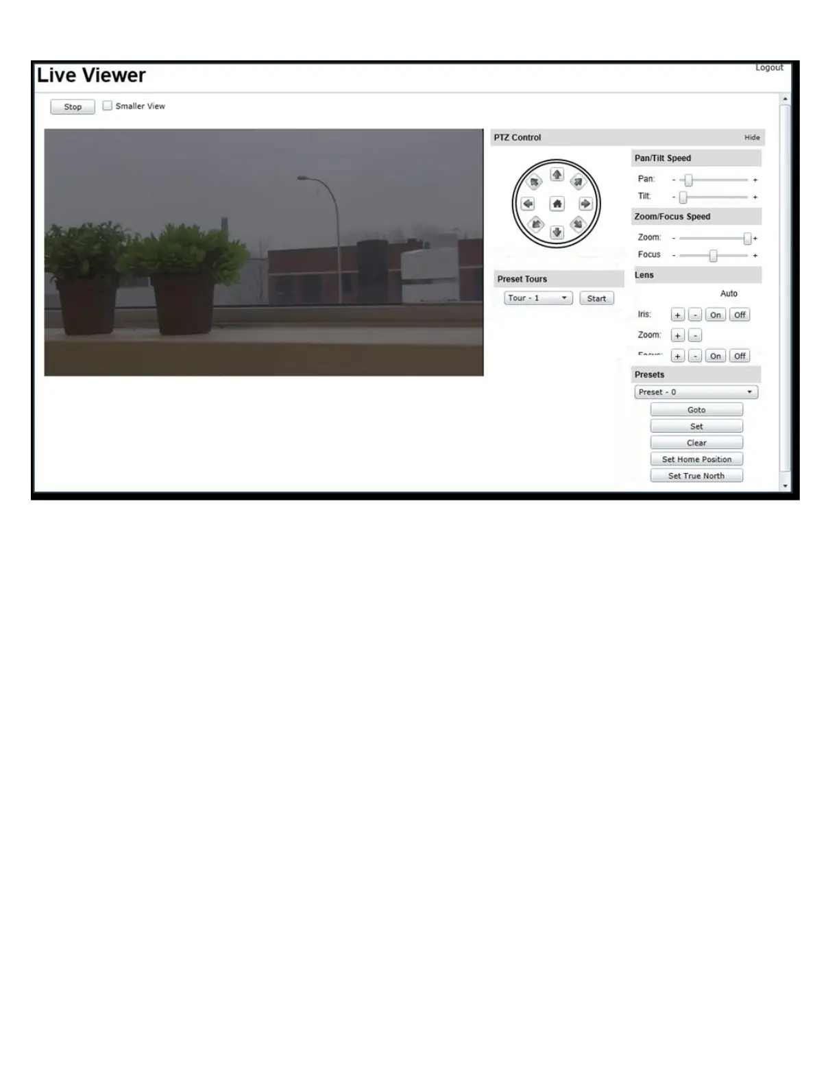 The PTZ unit can be controlled through the Live Viewer GUI page.