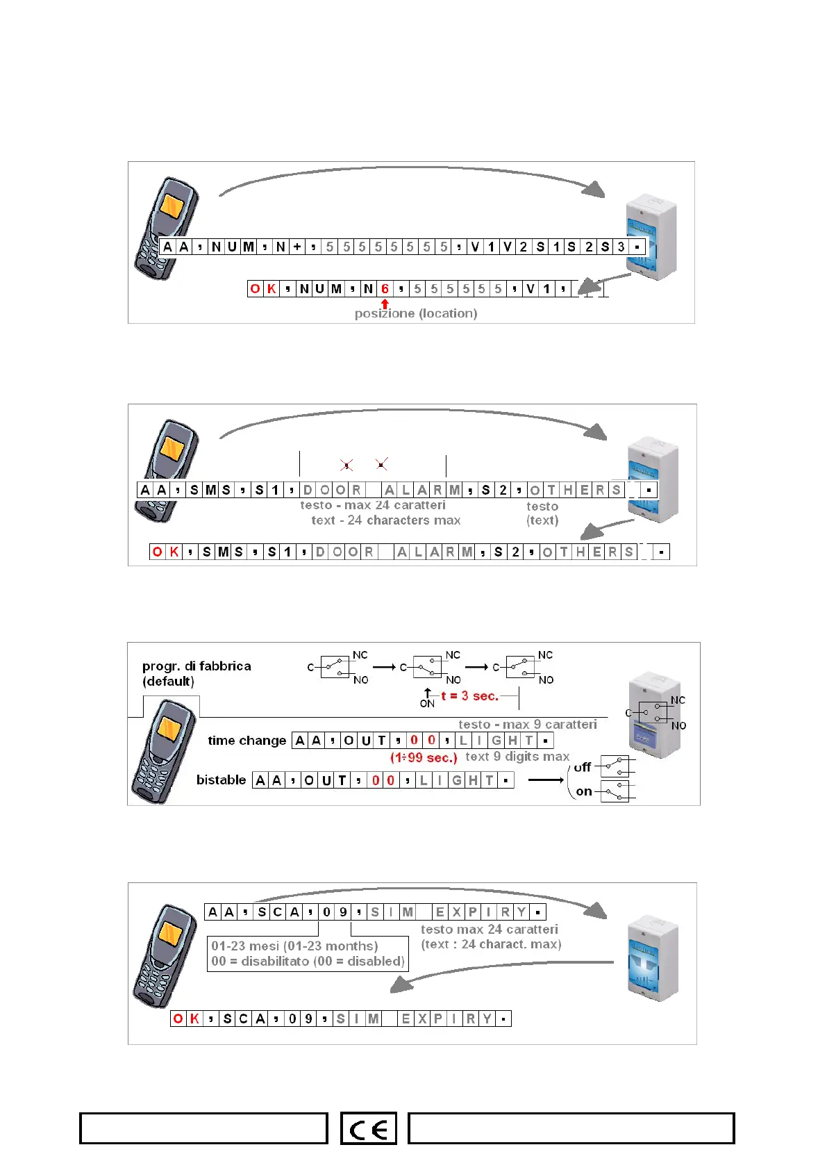 3.3.9 Écriture et/ou modification d’un texte d’un SMS (le dernier est toujours celui valable – max. 24 caractères) - attendre le SMS de