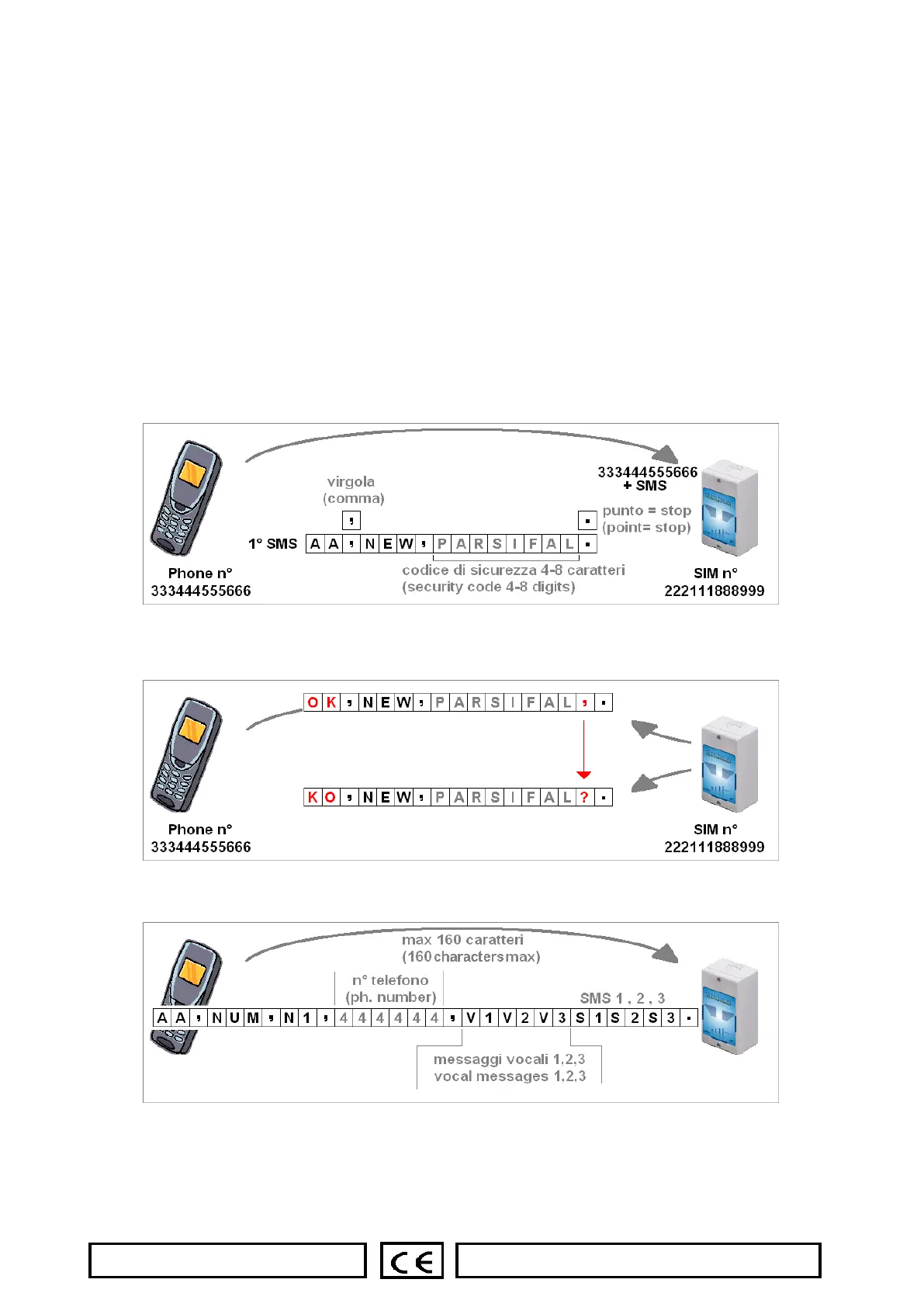 3.3 Programming of “password”, telephone numbers, SMS messages and settings.